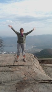This past Sunday I took a baby step walk up a small mountain in the Adirondacks. Small compared to the mountains I have hiked in the not-too-distant past. After 9 months of lying on the couch, not so much my choice but forced by treatment-induced illness, I’ve had to start over. I have a memory of what it was like to be fit and strong, I know it in my mind and my body has a cellular memory of those past hikes. It’s been very hard work the last 7 months to get strong enough to reach the top of even this small mountain. Like the baby girl I picture, I was excited, curious, delighted and exuberant when I reached the top, not even thinking about needing to get back down [if you’re a hiker you know this can sometimes be harder].